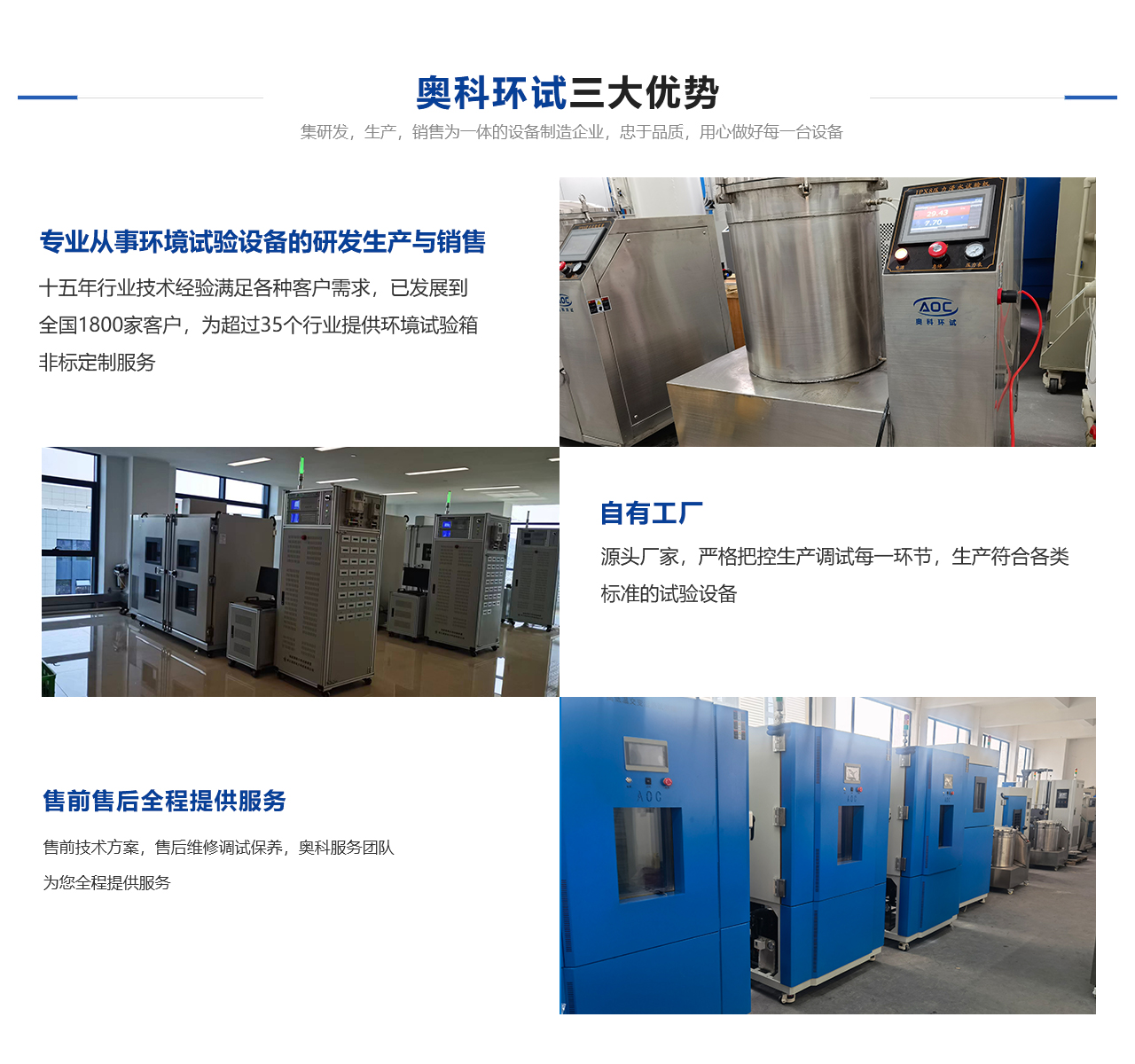 安徽奧科試驗(yàn)設(shè)備有限公司隸屬于杭州奧科環(huán)境試驗(yàn)設(shè)備有限公司直屬分公司,是一家從事各種試驗(yàn)設(shè)備研發(fā)、生產(chǎn)與銷(xiāo)售一體的技術(shù)單位。總公司擁有強(qiáng)大的技術(shù)團(tuán)隊(duì)及科學(xué)嚴(yán)謹(jǐn)?shù)纳a(chǎn)流程,鑄就了產(chǎn)品質(zhì)量。公司本著“以質(zhì)量求生存,以信譽(yù)求發(fā)展”的原則,為科研、軍事、航空、電子、汽車(chē)、石油、化工、醫(yī)療、通訊等各大院校和企事業(yè)單位提供符合GB、GJB、IEO、ISO、ASTM、MIL、DIN等標(biāo)準(zhǔn)的各類(lèi)環(huán)境試驗(yàn)設(shè)備,并可根據(jù)用戶的需求設(shè)計(jì)制造各類(lèi)非標(biāo)性設(shè)備。奧科奉行“進(jìn)取求實(shí)嚴(yán)謹(jǐn)團(tuán)結(jié)”的方針,不斷開(kāi)拓創(chuàng)新,以技術(shù)為核心、視質(zhì)量為生命、奉用戶為上帝,竭誠(chéng)為您提供高性價(jià)比的自控產(chǎn)品及無(wú)微不至的售后服務(wù)。